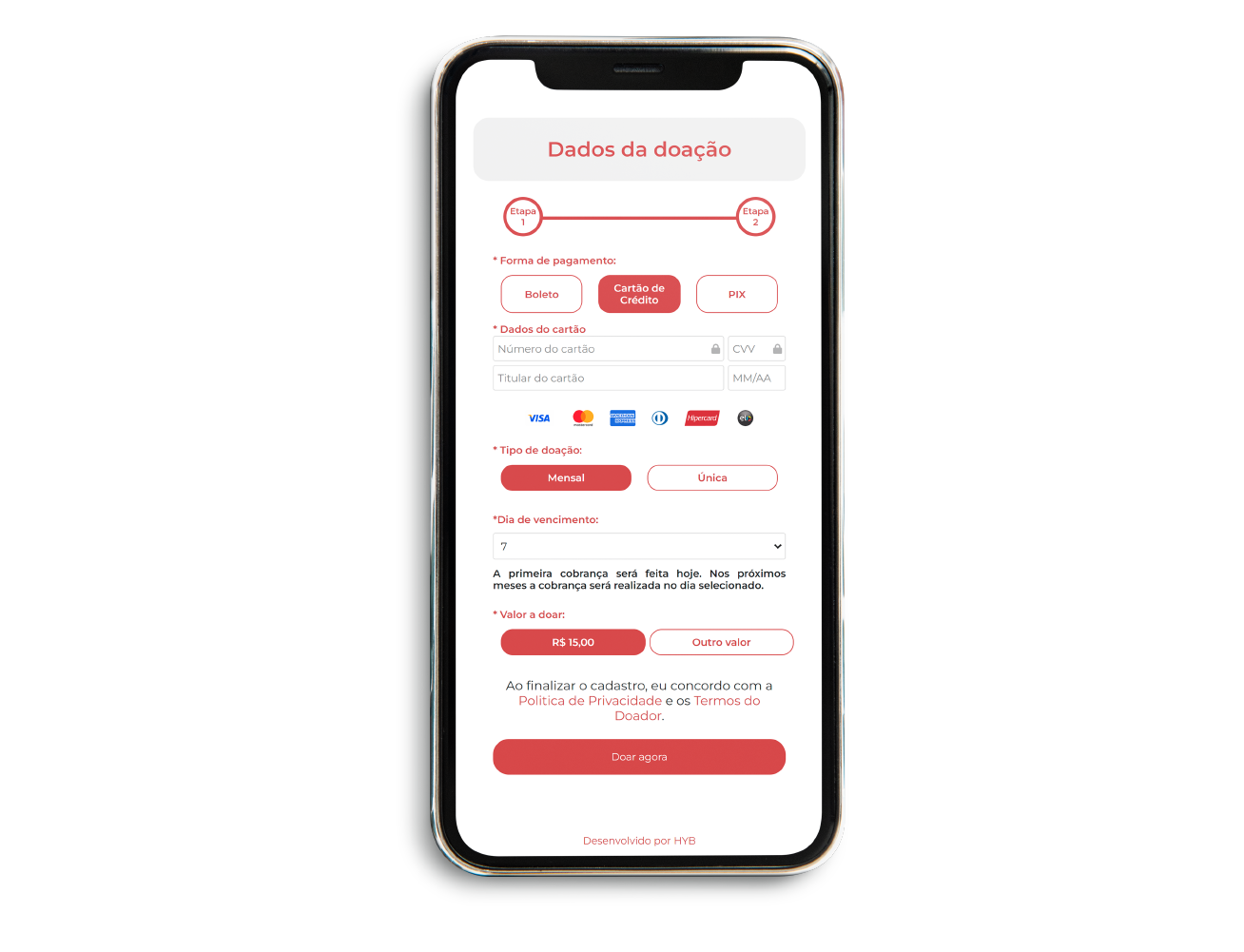 Em apenas 2 etapas o doador finaliza uma doação.