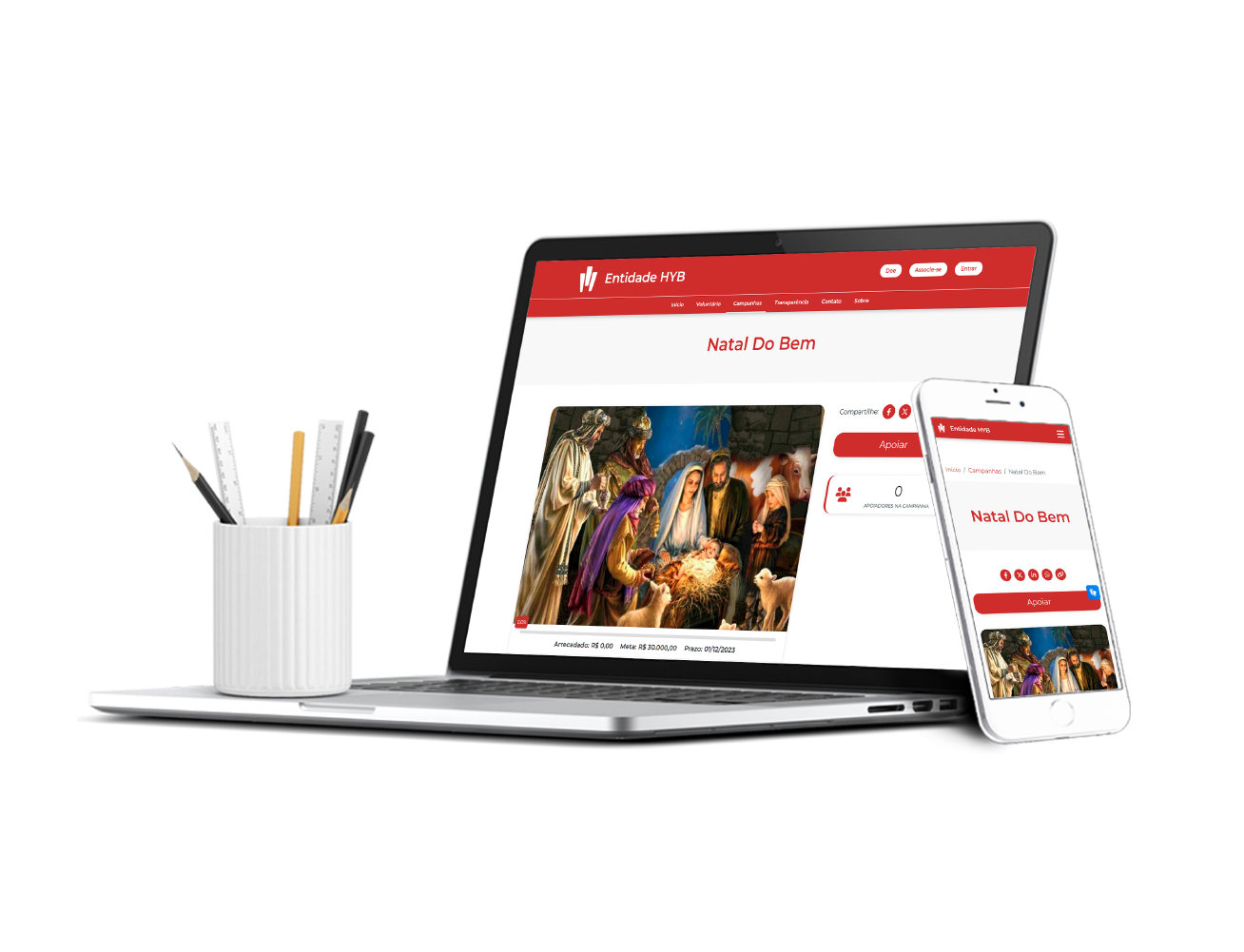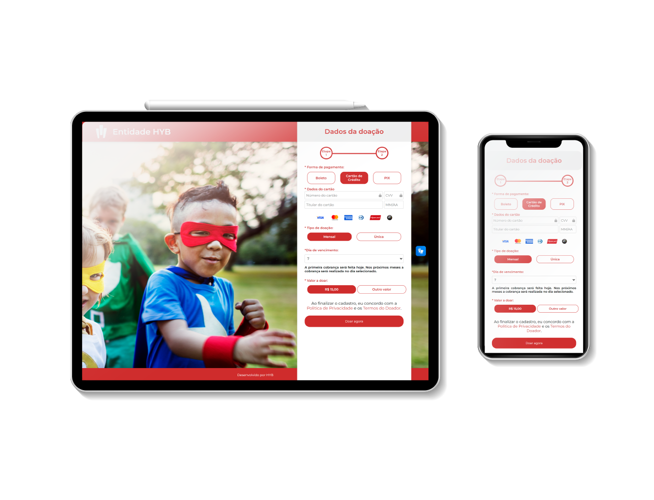 Página de alta conversão de doadores. Acesso de qualquer dispositivo como celular e tablet.